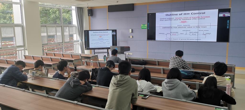 研究生讲授了《高精度运动控制》课程。该课程共计24学时,按照每周2或4课时,连续七周授课的开课方式。课程内容包括运动控制设计、机电系统中执行器的PMSM矢量控制、鲁棒控制设计、前沿话题摩擦控制器补偿和应变波齿轮定位装置的精密运动控制等。岩崎誠教授围绕现代机电一体化的技术发展进程,用实际工程案例、模型仿真结果、实验室设计成果等方式研究生呈现了日本机械工业体系中有关高精度控制的技术成果。