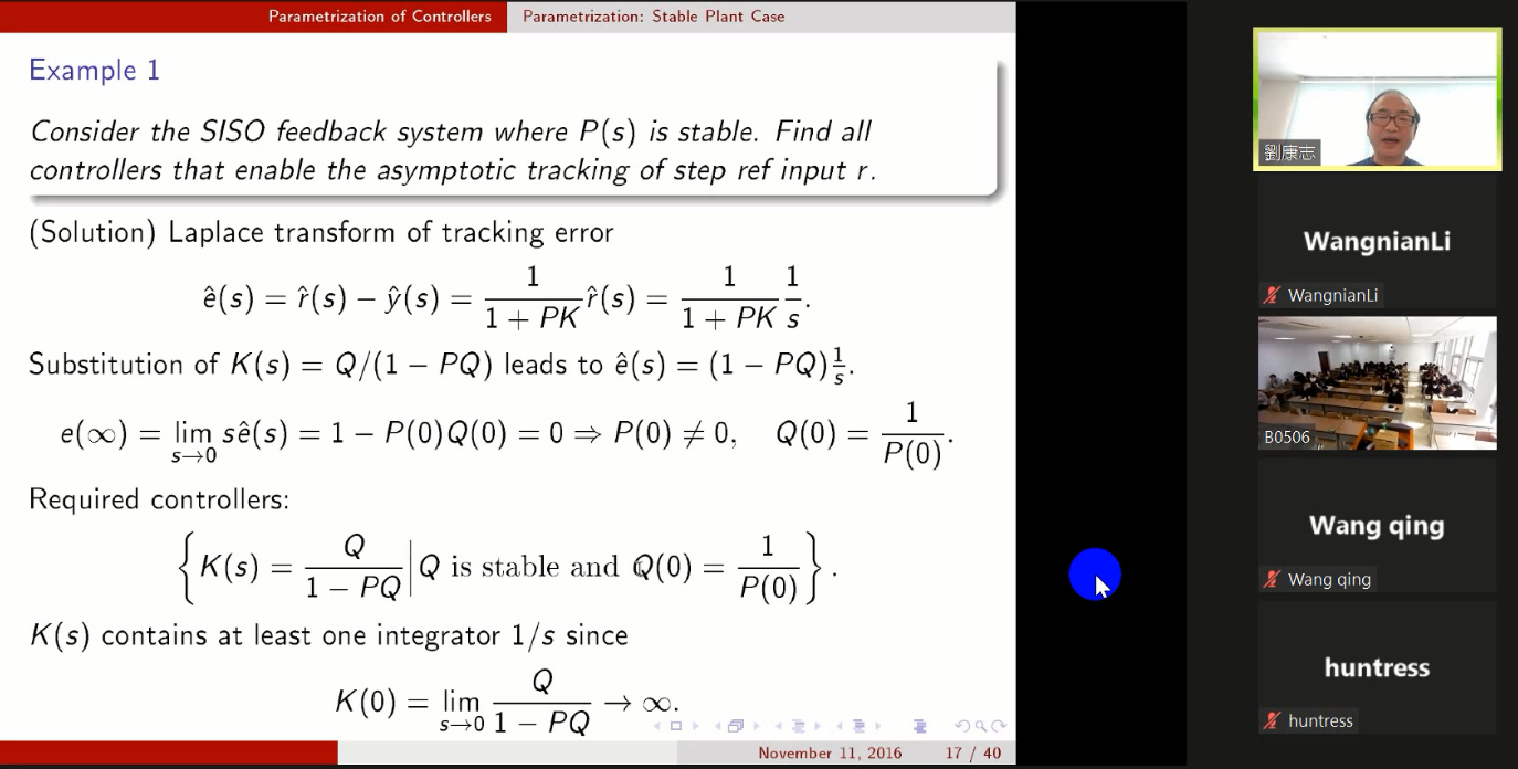 刘康志教授讲授内容涵盖了鲁棒控制的工程背景、常用工具、经典方法、研究前沿等。Fundamentals of Robust Control Theory (1): Backgrounds and Basic Tools主要讲述了工程背景、目前主流方法以及线性代数基础知识;(2) Uncertainty Models主要讲述在鲁棒控制中如何利用不确定性特性以及利用带有自由参数的简单公式来描述稳定判据; (3) Tools for robust analysis and design主要讲述时域与频域性质之间的关系以及基本的控制设计方法; (4) Typical Methods of robust analysis主要讲述增益有界不确定性系统的鲁棒性条件; (5) Typical Methods of robust analysis主要讲述李亚普诺夫和无源性两种经典鲁棒控制方法; (6) Lur’e system and new directions主要讲述Lur’e系统并介绍了鲁棒控制新的方向和实际应用。刘康志教授认真负责,授课严谨细致,从控制科学的角度出发,为学生深入讲解了控制领域鲁棒控制的应用,并在课后留出时间为研究生答疑解惑,学生们收获颇丰。