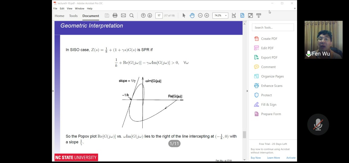 六次授课主题均与非线性系统分析与控制相关,涵盖非线性领域当前的研究热点与前沿,详细介绍了非线性系统的李雅普诺夫稳定性分析、被动性概念、小增益定理、绝对稳定性及中央流形定理。六次主题分别为:2nd-order nonlinear systems、Lyapunov stability theory、Lyapunov stability theory、Passivity of L-stability、Absolute Stability、Additional topics。