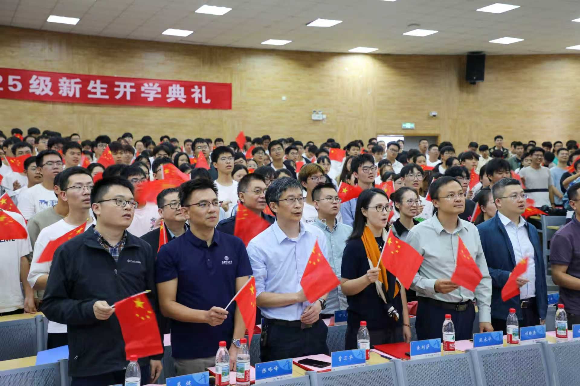 开学典礼在庄严的国歌中拉开序幕。
