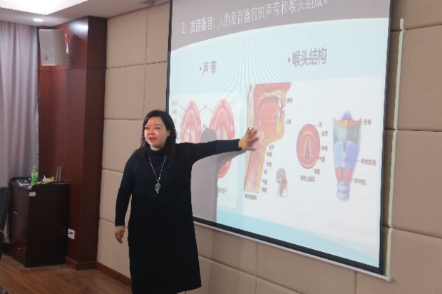 来自我校艺术与传媒学院的青年歌唱家余敏老师围绕“人体发声器官、常见发声器官疾病、嗓音保健措施” 三个方面帮助老师们切实体会到了科学发声的重要性,在轻松愉悦的氛围中领悟和掌握了简便实用的发声理论、练声方法和嗓音保健手段。大家纷纷表示活动很有意义,可以实际应用到日常教学中,同时希望以此为起点,定期开展相关活动,丰富大家的日常文化生活。
